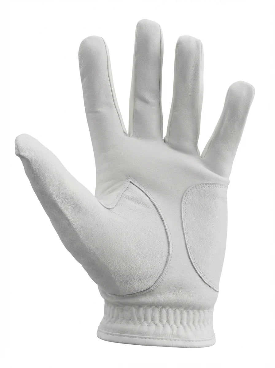 Mens Sub70 100% Cabretta Leather Gloves 100% Cabretta Leather Gloves Reinforced palm and thumb White with black trim and bear logo *Left hand glove for a right handed golfer