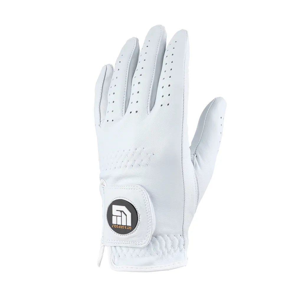 V Red Logo Cabretta Leather Golf Glove LH Full Leather Golf Gloves V Logo White Sold Individually Left hand glove for right-handed golfers